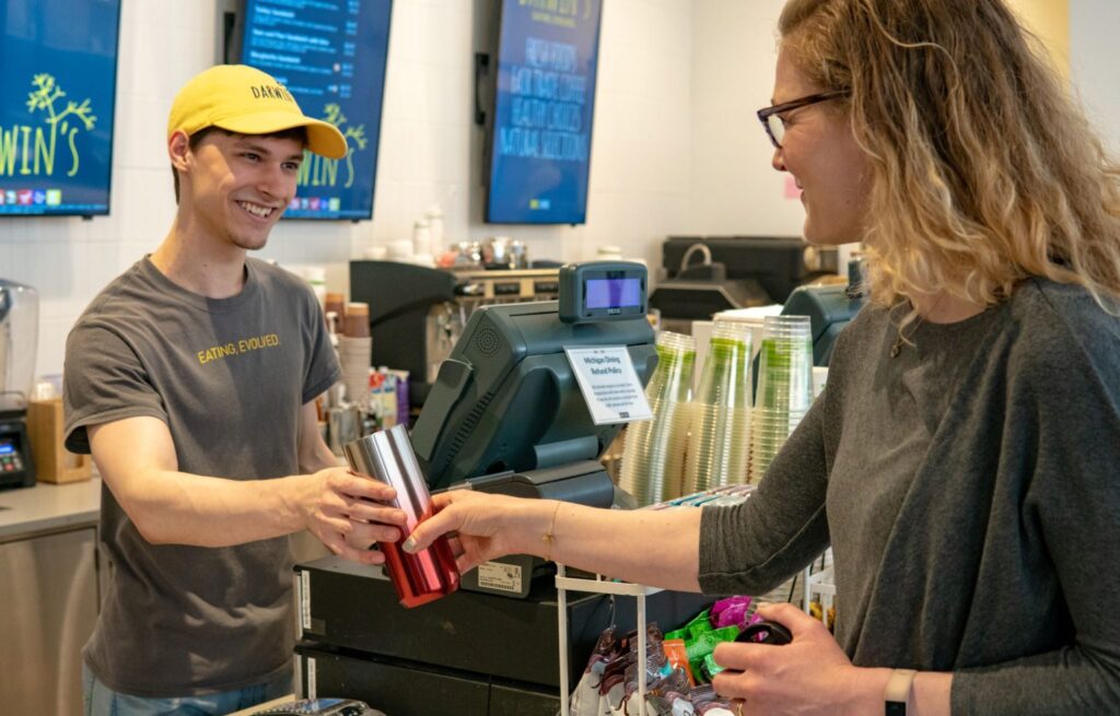 In the Spring of 2023, after receiving word that their current compost processor was changing the items they would accept in the bins, the Office of Campus Sustainability and MDining invested time over a greater part of the summer and fall working to provide a solution to keep the current campus-wide sorting practices intact. MDining investigated options for compostable supplies, while committing to ensuring all products used have BPI certification. OCS rolled up their sleeves and worked with local resources to find a new compost service provider, albeit further away, that would allow them to continue to compost the full range of items that U-M participants have been trained to do for over six years. Read more about Spurt Industries below.