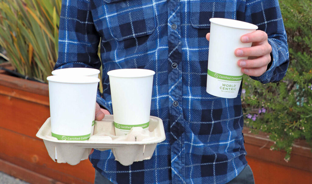 World Centric is FSC-certified to sell products under the FSC 100% and Mix certification. Our cups, bowls, and tray sleeves are made from FSC-certified paper. The hot cups and bowls are made with a plant-based lining, instead of the usual petroleum based lining. This makes them compostable in 2-4 months in a commercial composting facility.