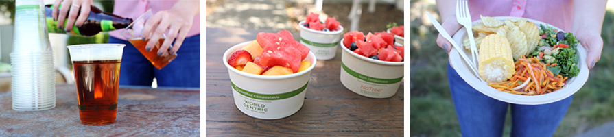 If you’re hosting a picnic or backyard barbecue, use compostable tableware. World Centric plates, cutlery, and cups are all commercially compostable and available at Whole Foods, Target, and Sprouts Farmers Market stores nationwide.