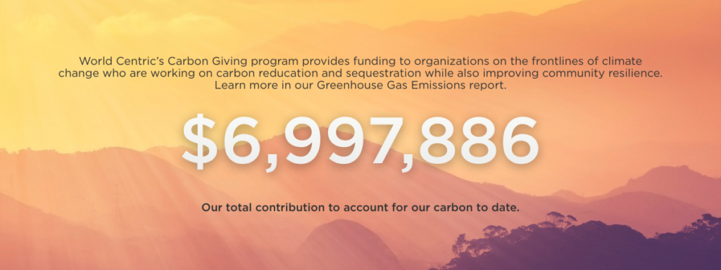Each year we calculate our carbon footprint. We reduce where we can. What remains, we address through Carbon Giving: investments in long-term carbon reduction and sequestration that also build resilience in frontline communities. Our team reviews projects for direct, measurable impact. We require ongoing reporting on results.